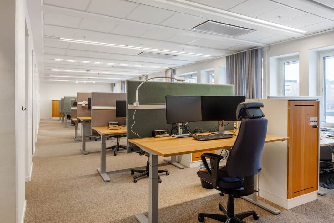 Lokalen omfattar totalt ca 3 400 kvm, fördelat på två våningsplan (plan 3 och 4), men kan med enkelhet anpassas efter era behov – till exempel delas ner till ytor från ca 700 kvm. De generösa lokalerna är i mycket gott skick, med en väldisponerad planlösning som erbjuder både öppna ytor och mötesrum i olika storlekar. Här finns alla förutsättningar att skapa en arbetsmiljö som främjar samarbete, effektivitet och trivsel.
