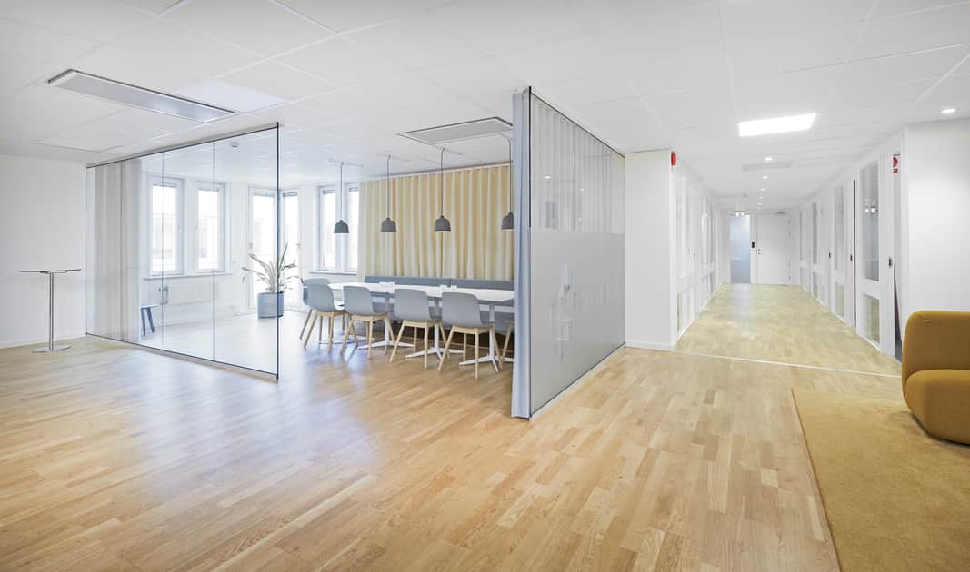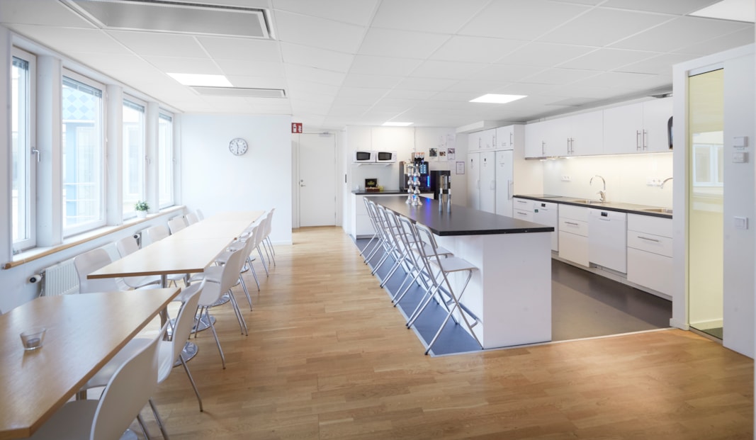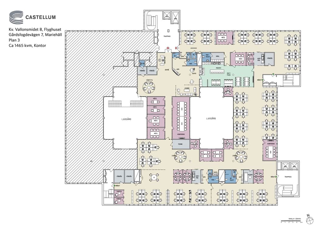 I mittkärnan av lokalen finns en ljusgård som ger ett härligt ljusinsläpp och skapar en ljus och trevlig arbetsmiljö.