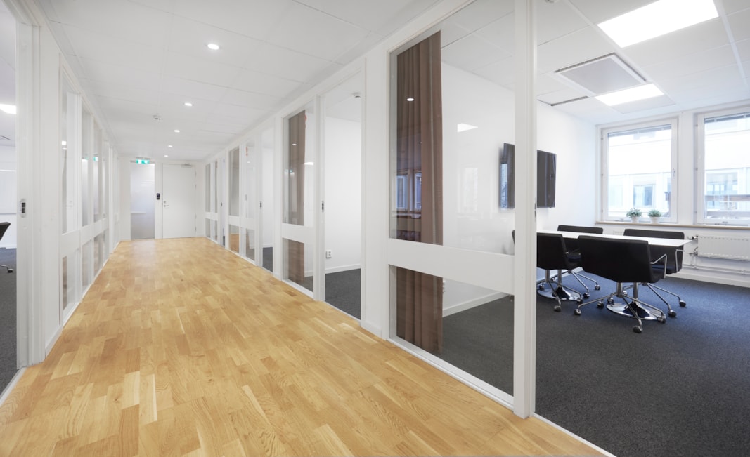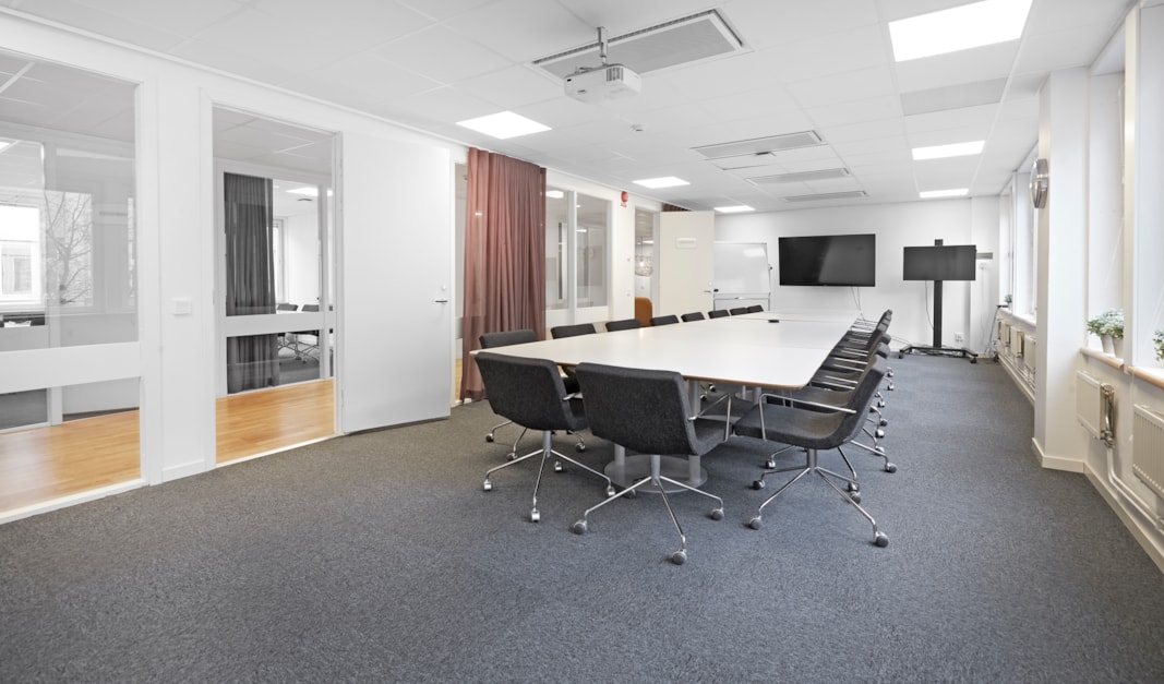 Lokalen har en öppen planlösning med ett flertal konferens- och mötesrum. Möjlighet att tillskapa fler kontorsrum finns.