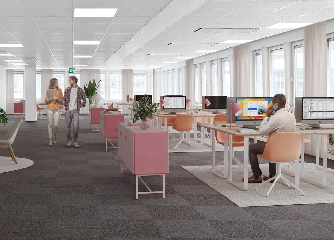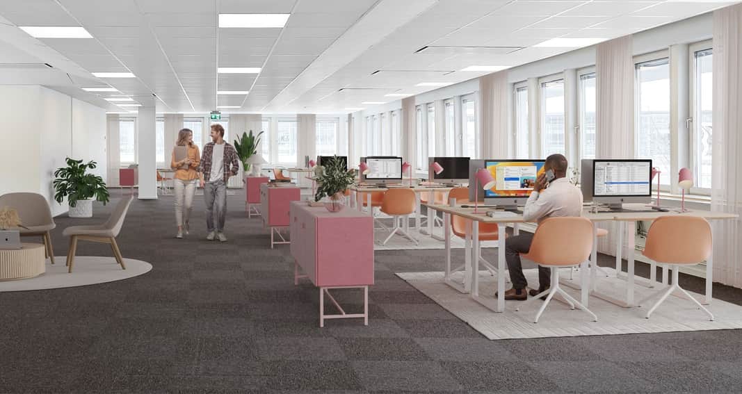 De ljusa ytskikten skapar en ljus och trivsam arbetsmiljö för medarbetarna.
