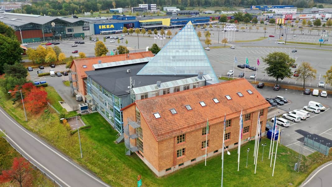Fastigheten omfattar kadettskolans två ursprungliga byggnader som förenas med en unik glaspyramid i sex våningar. Fastigheten ligger utmed E4:an och är smidig att komma till och från med både cykel, buss, bil och tåg.