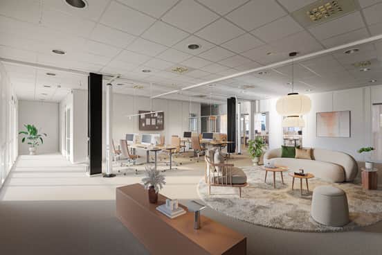 Lokalen har en bra kombination av kontor och öppen yta för kontorsplatser. Modernt kök och mötesrum.