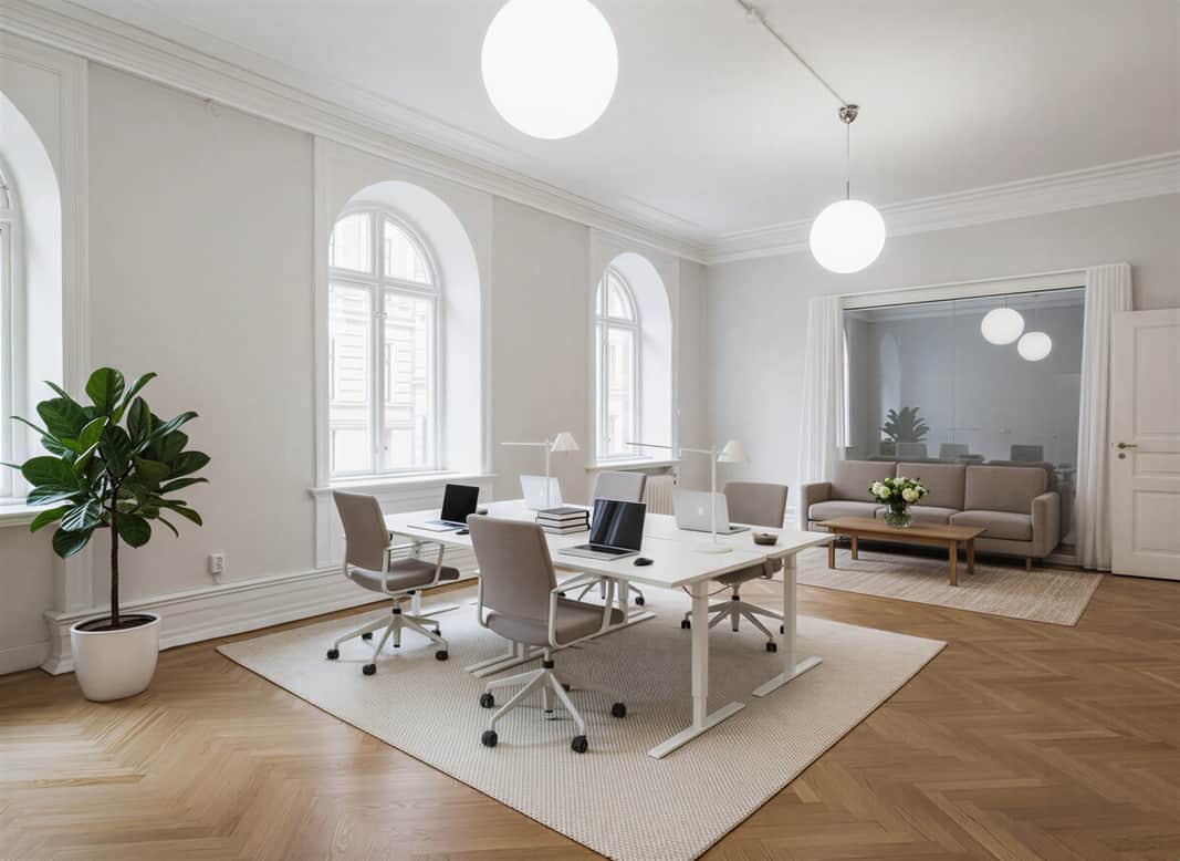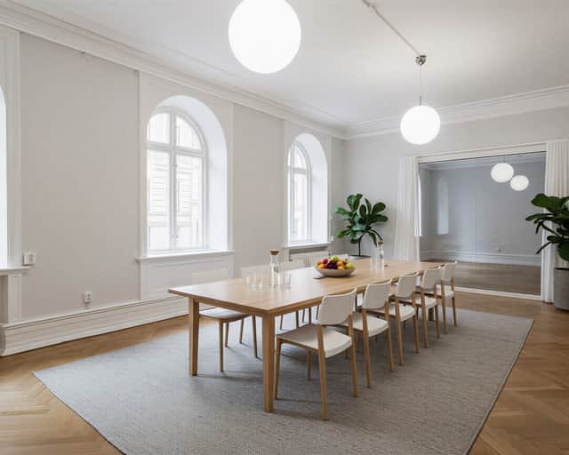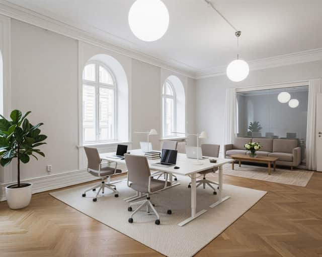Tillräckligt med utrymme för upp till 10 arbetsplatser och mötesrum.