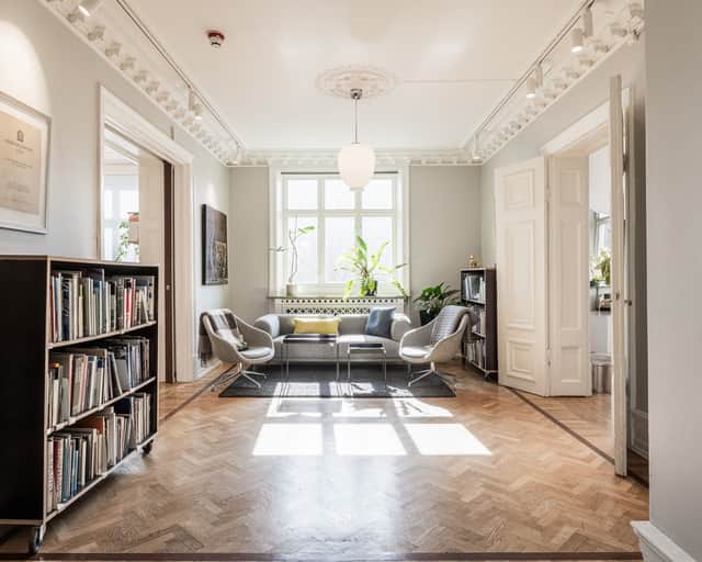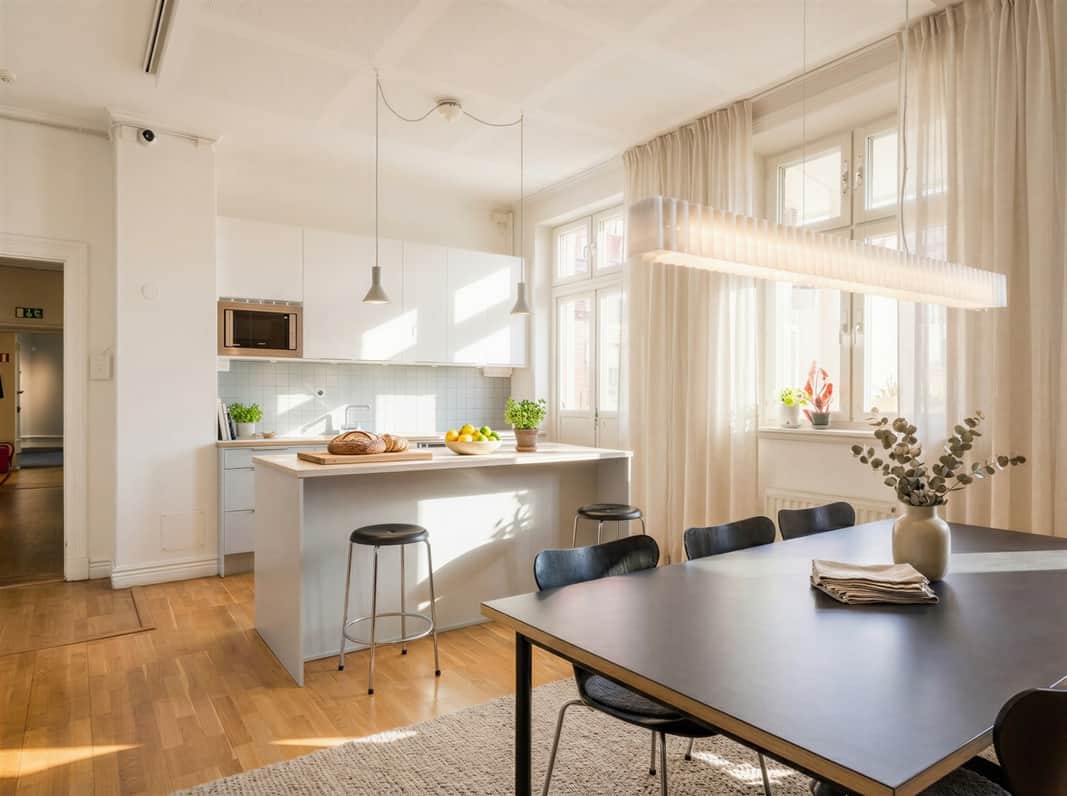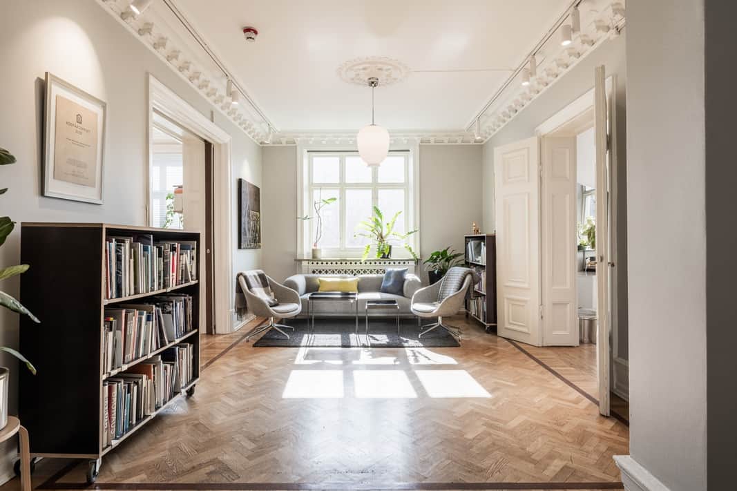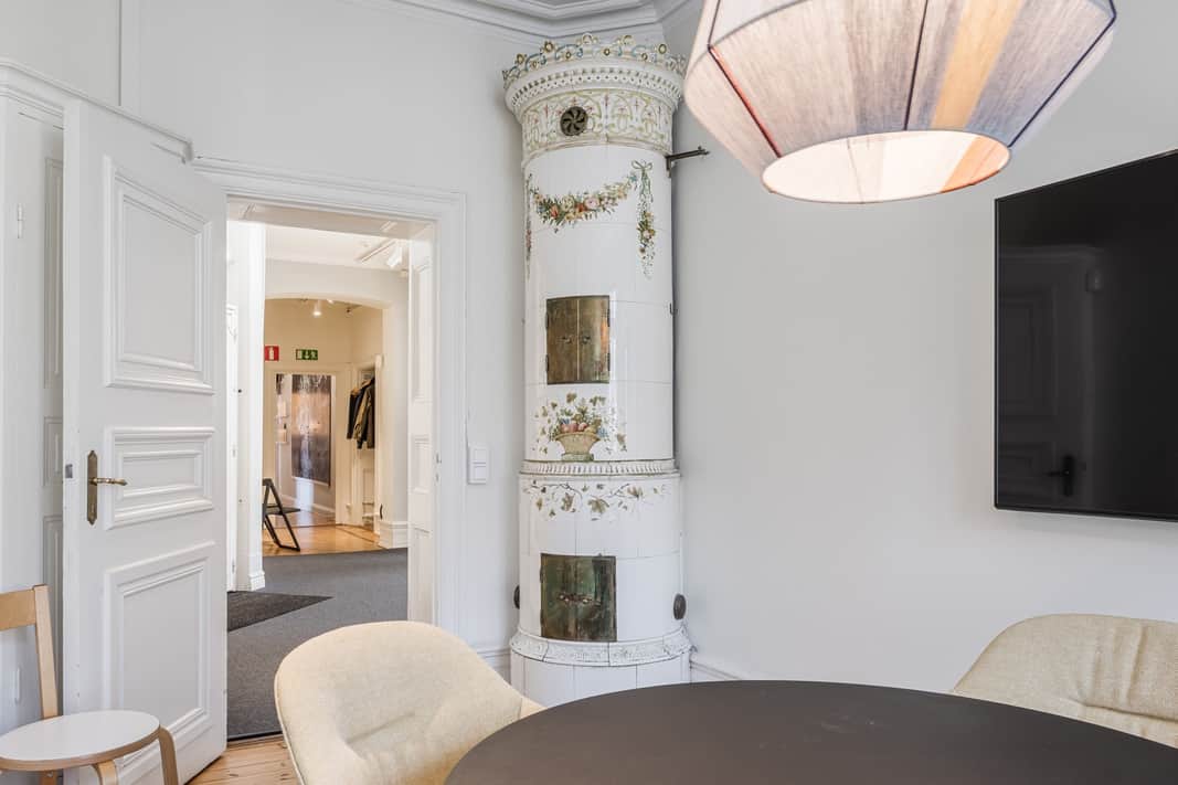 Här möts ni av vackra originaldetaljer som ger rummen en varm och genuin karaktär. Det generösa ljusinsläppet från de stora fönsterpartierna bidrar till en ljus och luftig känsla genom hela lokalen.