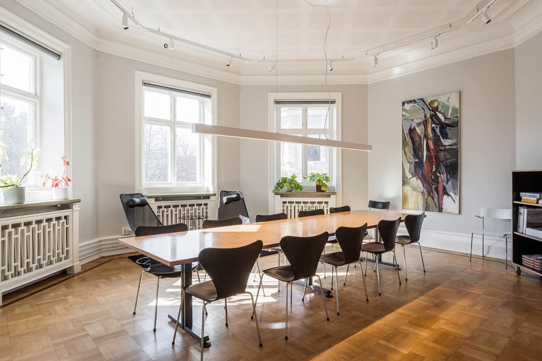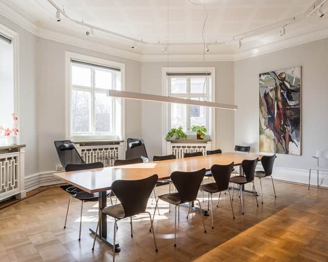 I anslutning till arbetsytorna finns konferensrum som lämpar sig för möten och presentationer.