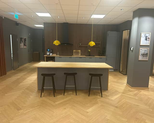 Här finns separat mötesrum, perfekt för kundträffar och presentationer, samt ett praktiskt pentry som gör arbetsdagen smidig och professionell.