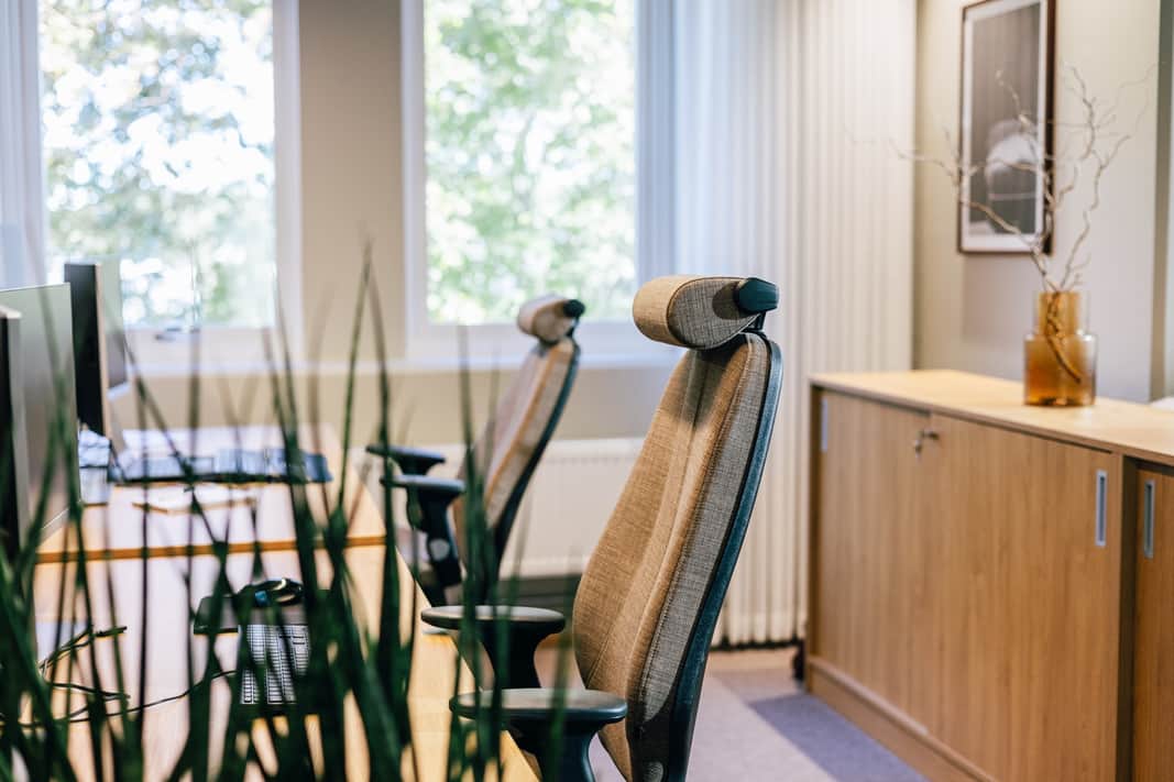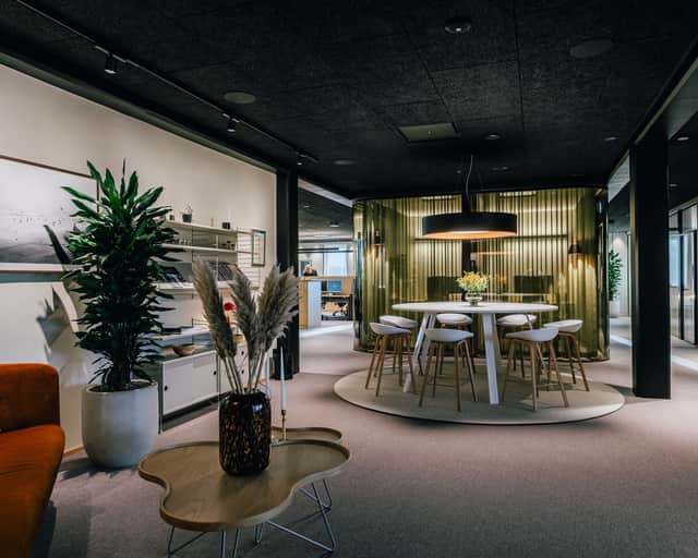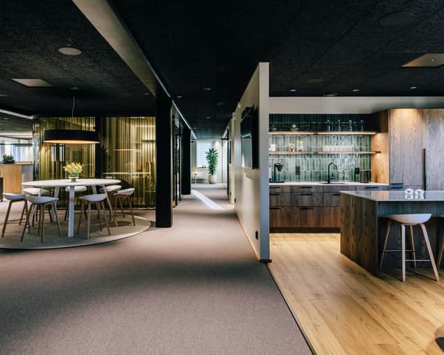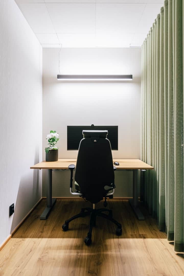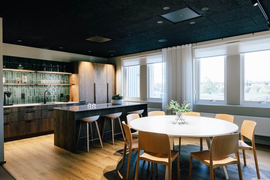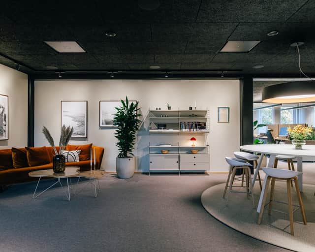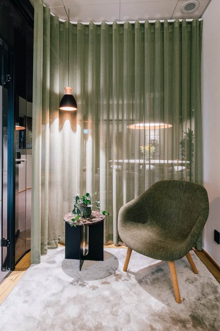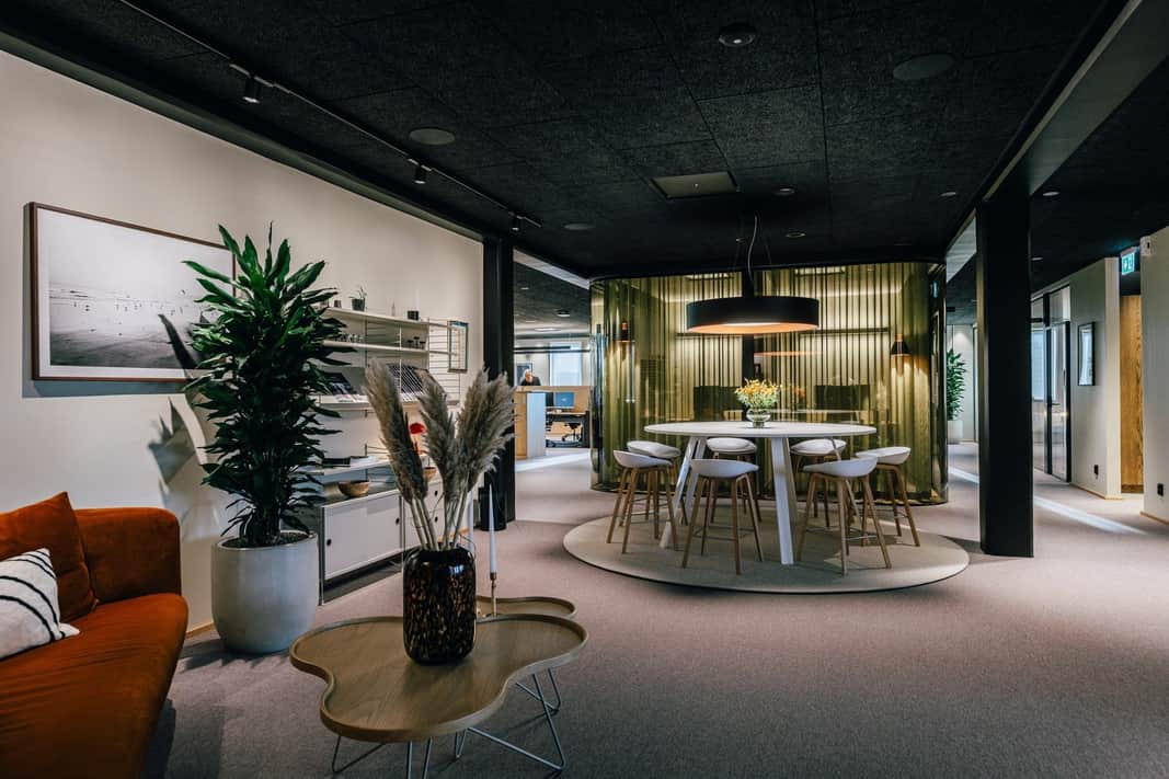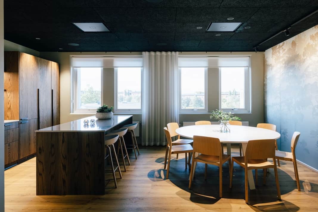 Bakom en diskret och anonym fasad döljer sig en modern och smakfull interiör som överraskar. Här möts ni av välplanerade ytor och eleganta detaljer som ger kontoret en professionell och samtidigt hemtrevlig känsla.