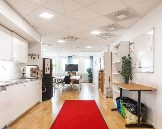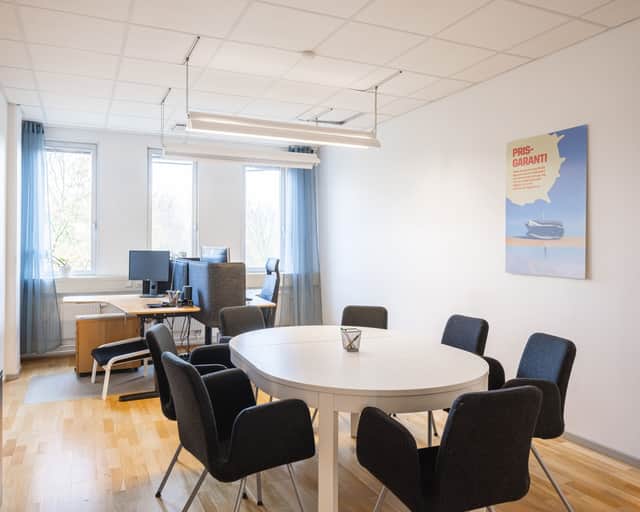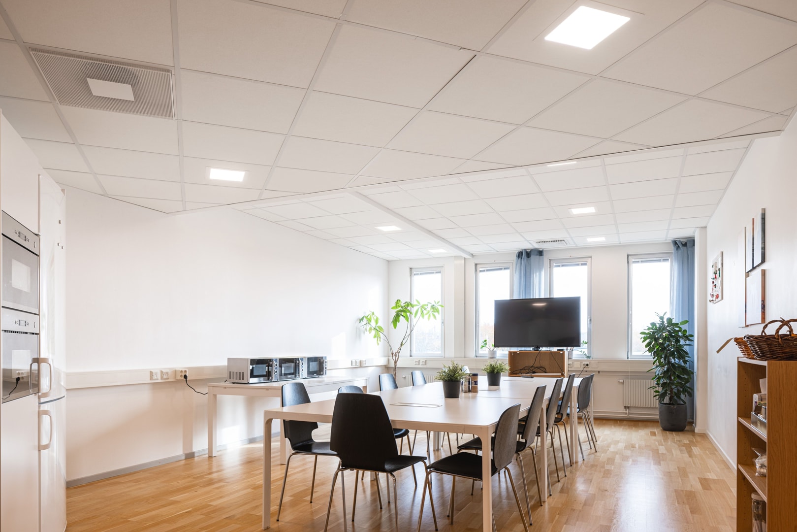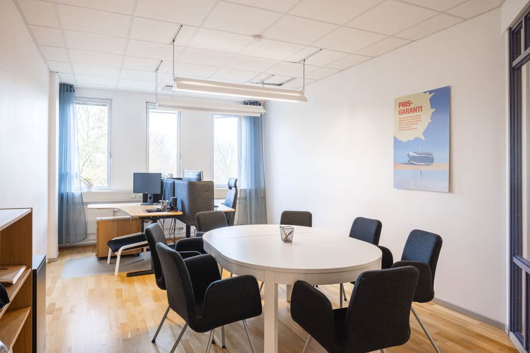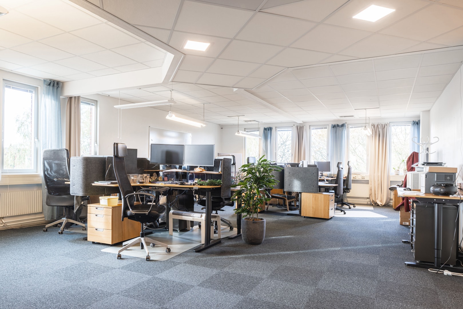 Lokalen bjuder på generösa fönsterpartier med utsikt över grönområde, ett modernt pentry, konferensrum och parkeringsmöjligheter precis utanför dörren. Den flexibla planlösningen gör det enkelt att anpassa ytan efter din verksamhet, oavsett om du föredrar öppna ytor, enskilda kontor eller en kombination.