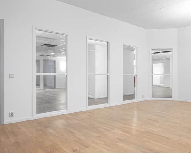 Planlösningen är designad för att möta alla dina företagsbehov. Med 11 rum för mångsidig användning och 1 större mötesrum för strategiska samarbeten skapar vi en flexibel och funktionell arbetsmiljö. Mitt i kontoret hjärta finner du en öppen mötesplats där det funktionella pentryt är placerat. Detta inte bara främjar en gemensam samlingspunkt för dina anställda utan skapar också en atmosfär av samarbete och delaktighet. Här kan idéer blomstra och teamkänslan stärkas.