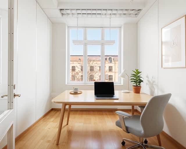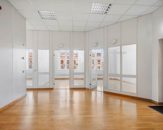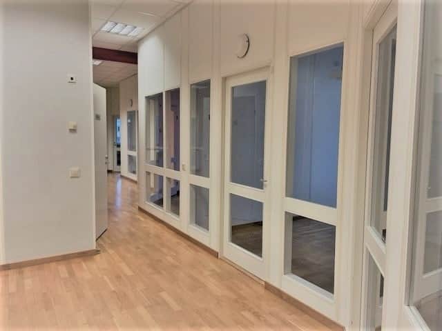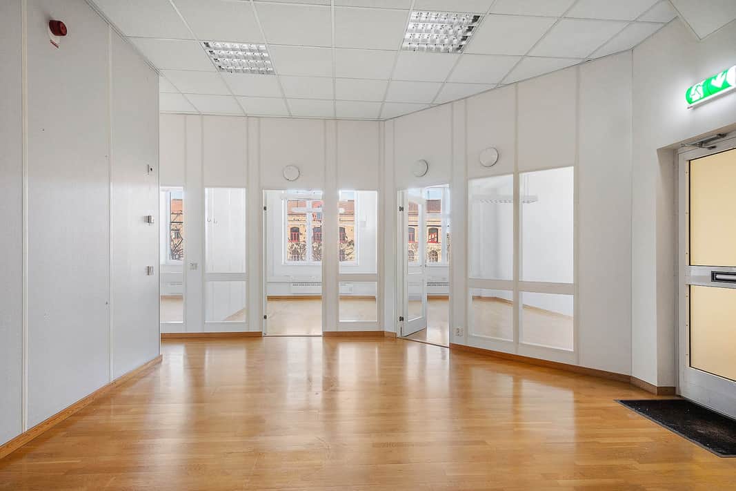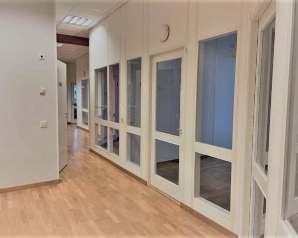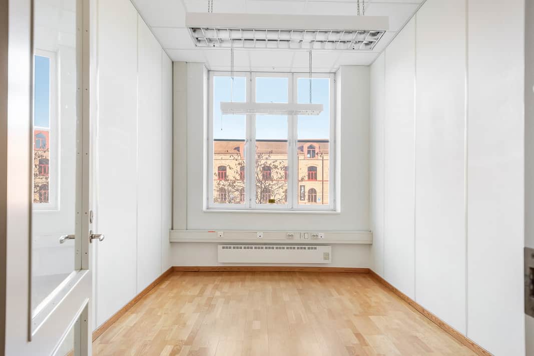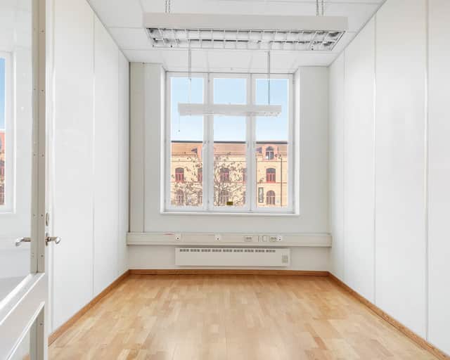 Rymliga kontorsrum med glaspartier för att ta vara på det generösa ljusinsläppet via de stora fönstren. Golvet är belagt med parkett. Det går att anpassa lokalen för att möte era önskemål. Vid anpassningar försöker vi alltid ha hållbarhet och återbruk i åtanke.