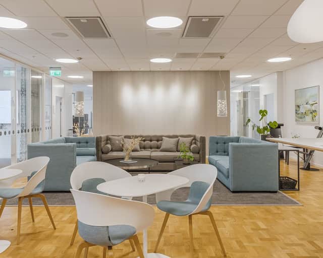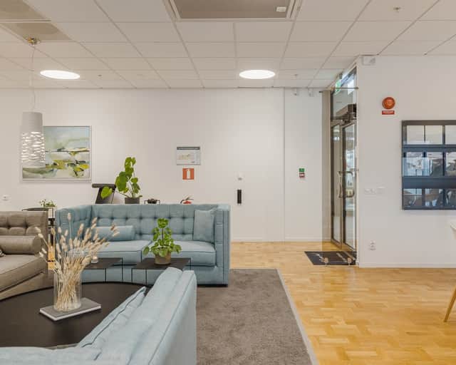 Planlösningen är smart och flexibel med en inbjudande loungeyta direkt vid entrén, flera mötesrum i olika storlekar och 22 enskilda kontorsrum som ger både arbetsro och struktur. En rymlig pausyta med pentry skapar en naturlig plats för återhämtning och gemenskap. Lokalen har tre toaletter, varav en är tillgänglighetsanpassad, och det höga läget på våning 5 ger ett fantastiskt ljusinsläpp och utsikt över staden. Det finns även möjlighet att öppna upp delar av lokalen för att skapa större ytor eller anpassa planlösningen efter verksamhetens behov.