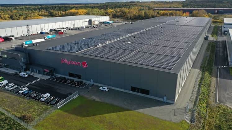 Förra året nådde vi vårt mål om att bygga 100 solcellsanläggningar före 2025 när vi invigde en solcellsanläggning i Smista, söder om Stockholm. Under invigningen deltog vår hållbarhetschef Filip Elland och vd Joacim Sjöberg. Joacim berättade under invigningen att solenergi både är en del av vår hållbarhetsstrategi och ett skydd mot stigande elkostnader. Solcellsinvesteringarna har dessutom visat sig lönsamma, med en marginalavkastning mellan 8 och 10 procent.