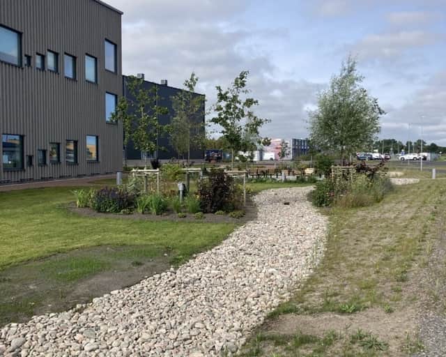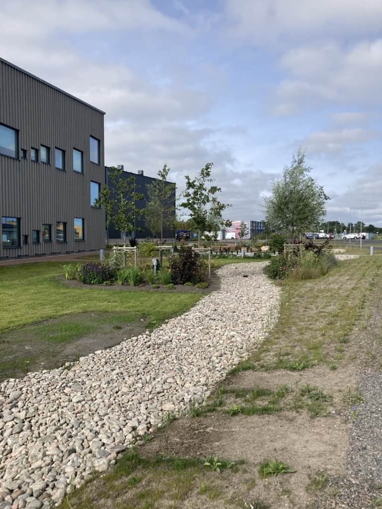 - anlägga dagvattendammar intill fastigheten. Dammarna avlastar våra dagvattenledningar genom att lagra vattnet och minska trycket på ledningarna och är även positivt för den biologiska mångfalden.