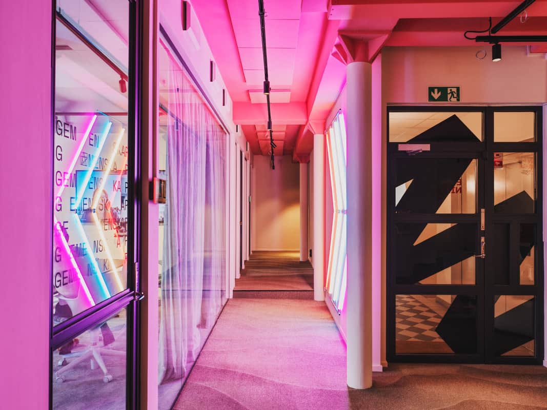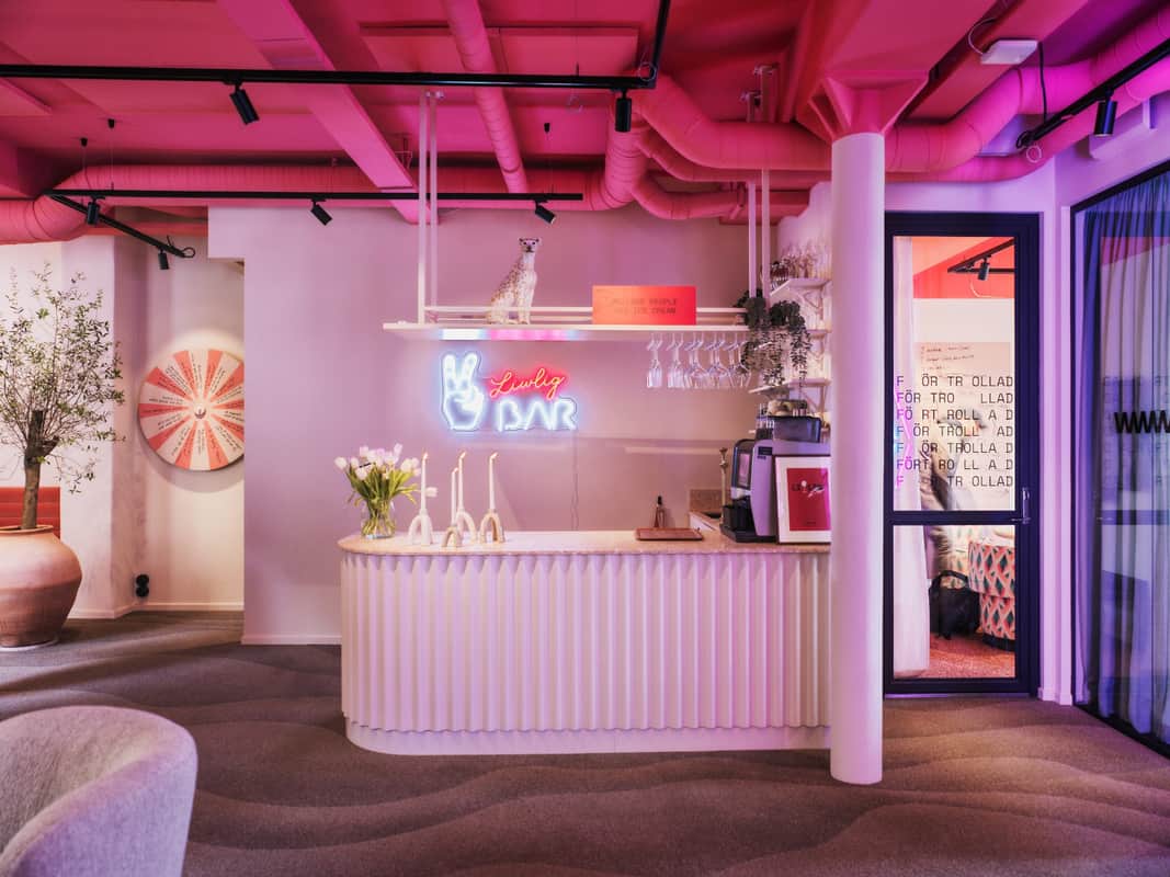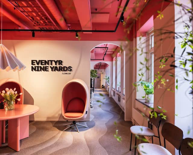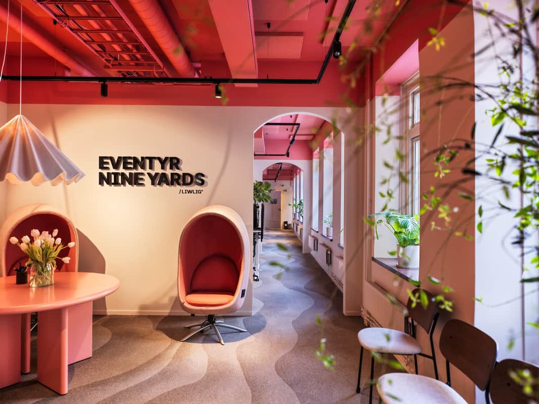 Stiger du in genom dörren hos EVENTYR NINE YARDS möts du av något av en rosa dröm. Här är det som att kliva in i ett expertdesignat vardagsrum, eller möjligen ett hippt kafé. Baren bjuder in till avslappnat häng, gamingrummet utmanar till lekfull avkoppling, och matbordet som kan omvandlas till ett pingisbord bjuder upp till tävling. Men hur skapar man ett kontor som detta?