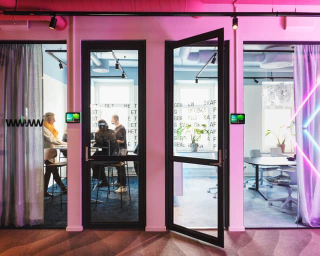 Idag är Moa och Erikas önskan att kontoret ska få vara en levande plats med rum för co-working och interaktion, men även anpassade ytor för de som vill sitta mer avskilt.