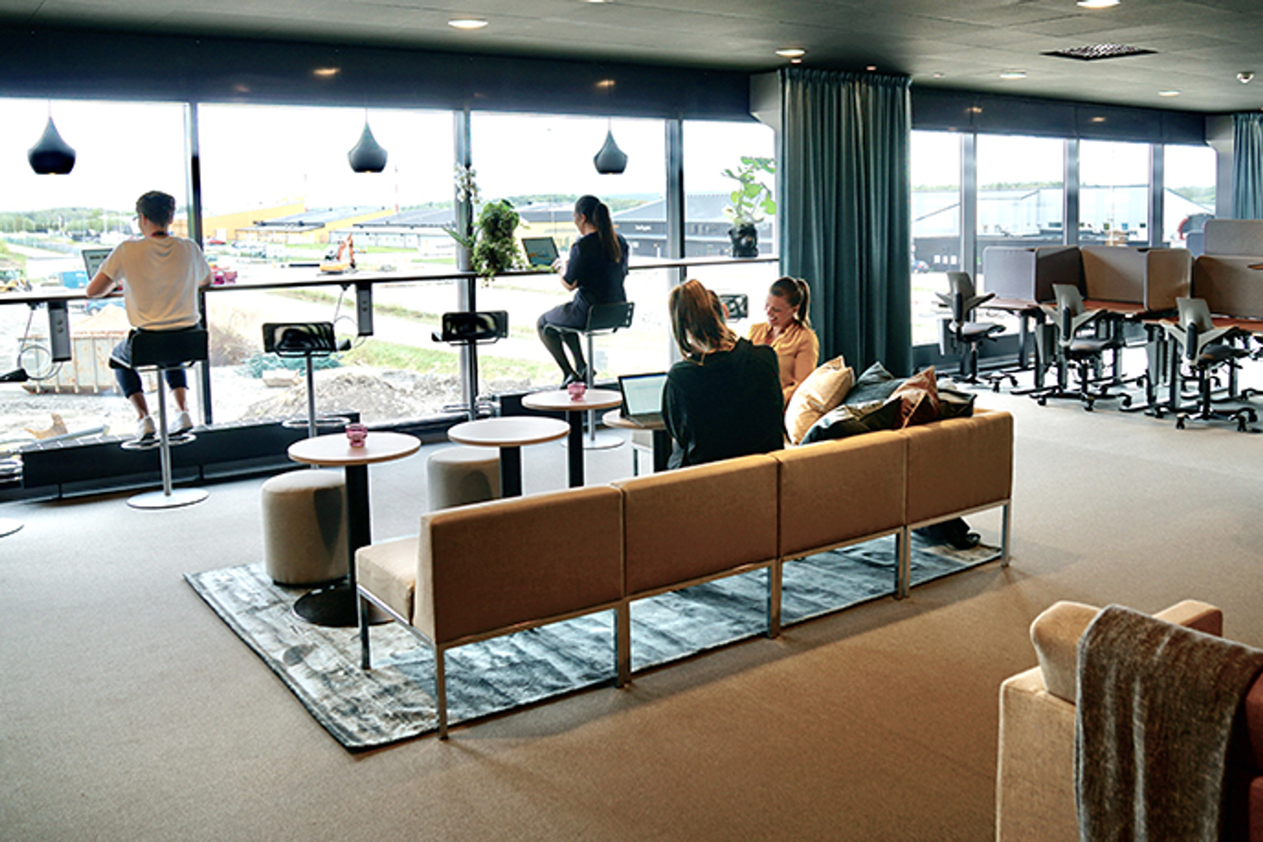 Företag kan hyra in sig oavsett storlek och anledning; coworking passar till exempel nyetableringar, småföretag samt företag som vill testa att arbeta aktivitetsbaserat. Lokalerna, som ligger vid entrén till flygplatsen, är ljusa tack vare stora fönster med fint ljusinsläpp. Den moderna inredningen är vald med återbruk och hållbarhet i fokus med sober design. Förutom det som ingår i hyran – som gemensam lounge och pentry, kaffe, städning, wifi och skrivare – kan medlemmarna också hyra mötesrum till medlemspris.