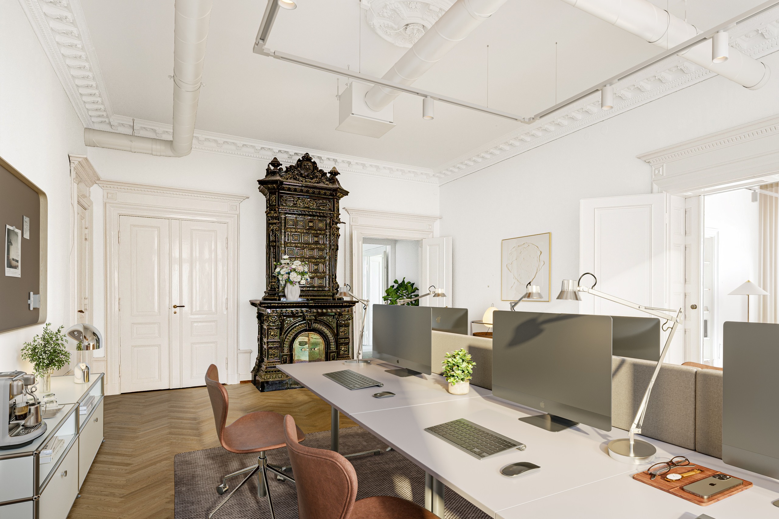 – Vi bevarar de historiska originaldetaljerna med kakelugnar, pardörrar, stuckatur i det höga taket och kombinerar dem med moderna lösningar och hållbarhetstänk. Resultatet blir en arbetsplats som stärker varumärket och ger medarbetarna en inspirerande miljö att längta till, avslutar Jeanette.