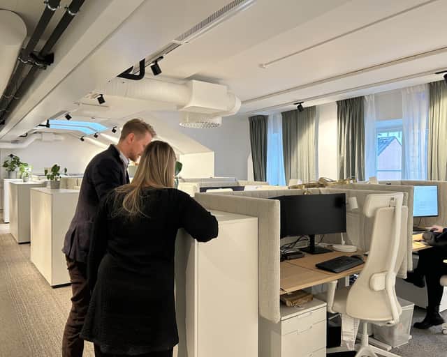 – I våra tidigare lokaler hade alla medarbetare egna rum. Det öppna landskapet vi har här skapar en helt annan synergi. Nu kan vi överhöra samtal och snabbt be varandra om hjälp, berättar Emil.