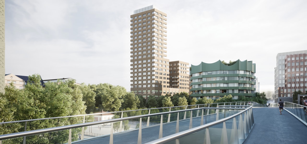 Wingårdh Arkitektkontor har gestaltat ett åttakantigt, smaragdgrönt kontorshus som blir ett framträdande entrémotiv för besökare till Stockholm norrifrån.