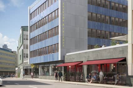 Samtidigt får andra delar av huset ett helt nytt liv. Alla tekniska system byts ut för bättre energieffektivitet. Hissen ersätts för att anpassas till moderna krav, liksom våtgrupper och pentry. Det är en långsiktig renovering som kommer att göra det enkelt att planera om när verksamheten förändras, utan att behöva tänka på att dra om vatten eller luft.