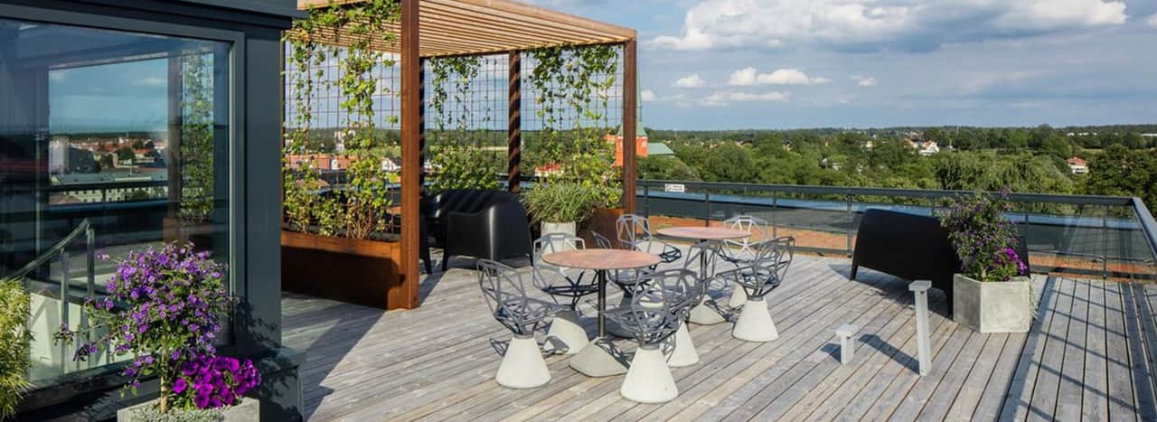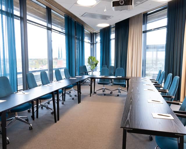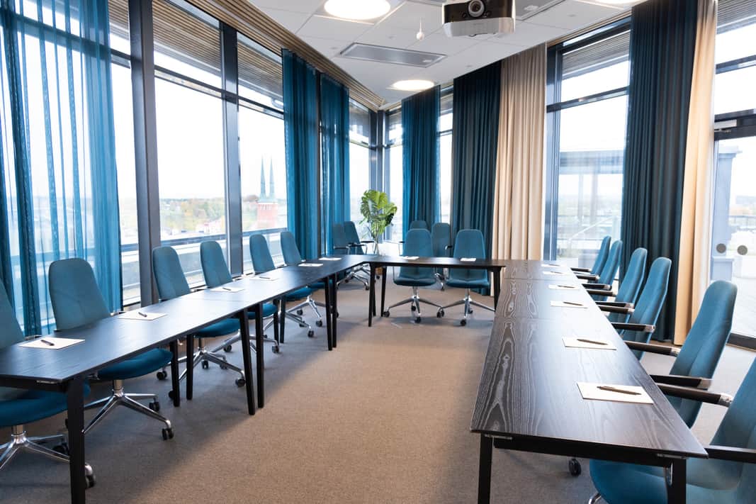 Vi erbjuder moderna och ljusa lokaler för både stora och små grupper. Alla rum är flexibla, har härligt ljusinsläpp och är utrustade med den senaste konferenstekniken. Den mest spektakulära lokalen ligger högst upp i huset, med direkt access till takterrassen och citys bästa utsikt. Här kan du mingla, eller ta en kaffe i solen och vila tanken under pauserna. Garanterat uppskattat av alla deltagare.
