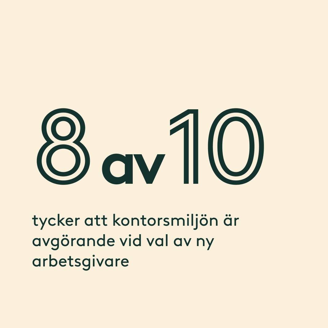 Bra kontorsmiljö lockar fler. 81 % tycker kontorsmiljön är viktig när de söker nytt jobb. Och ju bättre arbetsmiljö, desto högre närvaro.