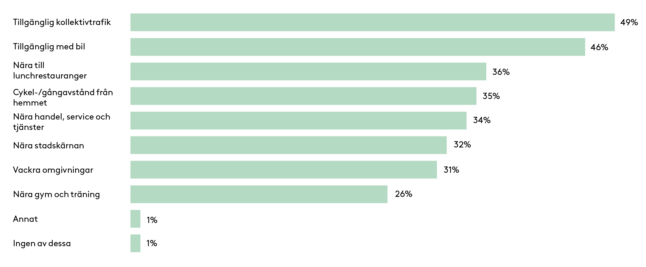 | Nära gym och träning | 37% | 29% | 25% | 23% | 18% |