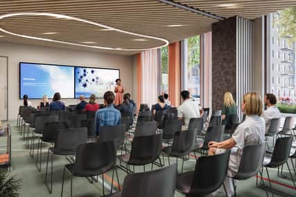 Högst upp på våning 8 kommer det att finnas bokningsbara konferensrum. Ett lite större för upp till 20 personer och ett mindre för upp till 10 personer. Pentry, loungyta och takterass i nära anslutning.