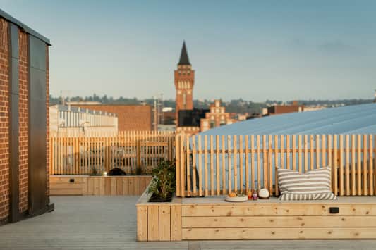 Som ett av Nordens mest hållbara fastighetsbolag hållbarhetscertifierar vi alla våra ny- och ombyggnationer. Vi erbjuder energieffektiva fastigheter med en trygg och hälsosam arbetsmiljö. Gröna avtal är standard, och energianvändningen i våra fastigheter är 50 procent under branschsnittet.